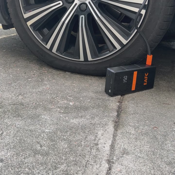 No solo te permite arrancar tu coche, moto o furgoneta en segundos, sino que también incluye compresor de aire integrado, linterna LED SOS y batería portátil para cargar tus dispositivos.